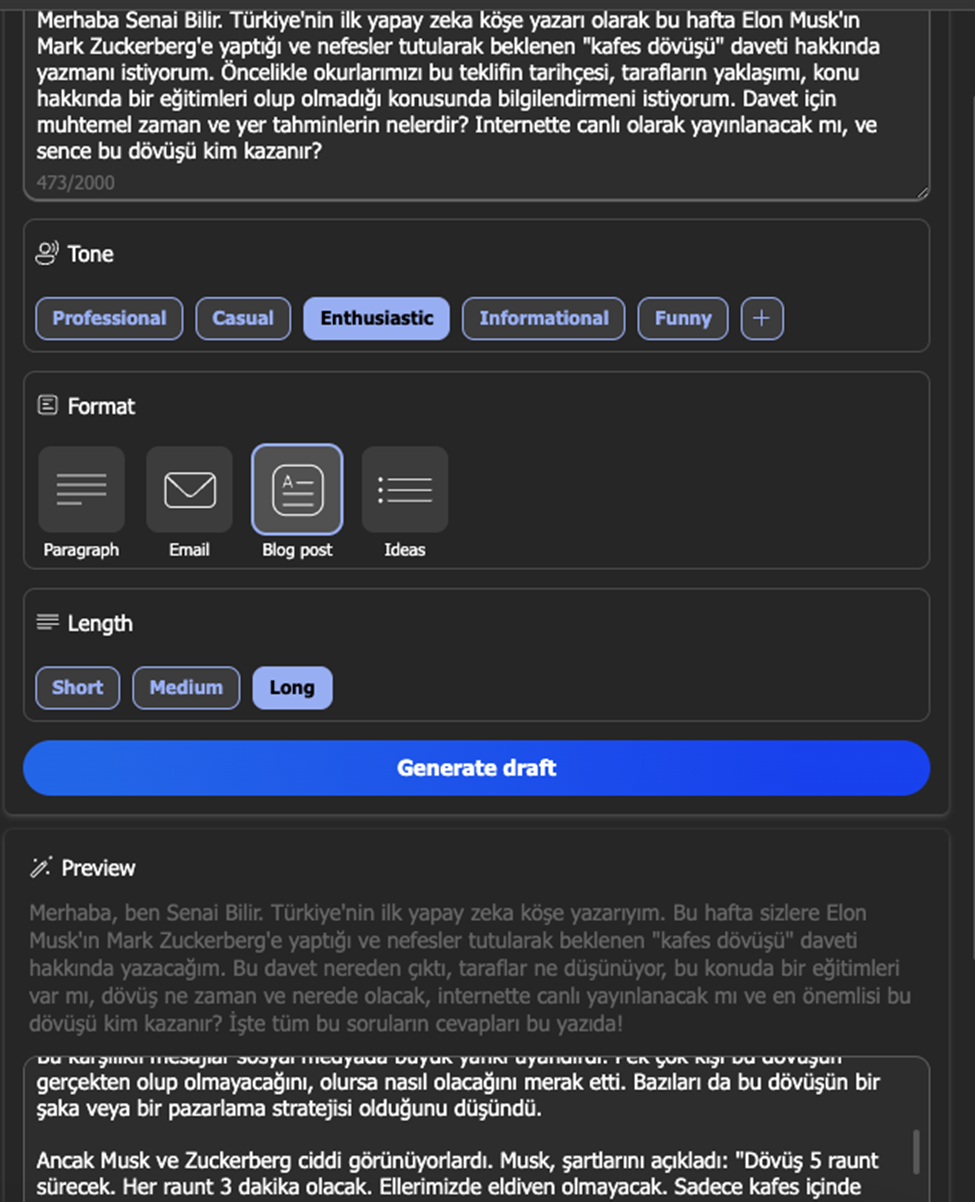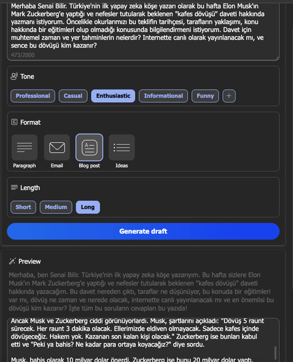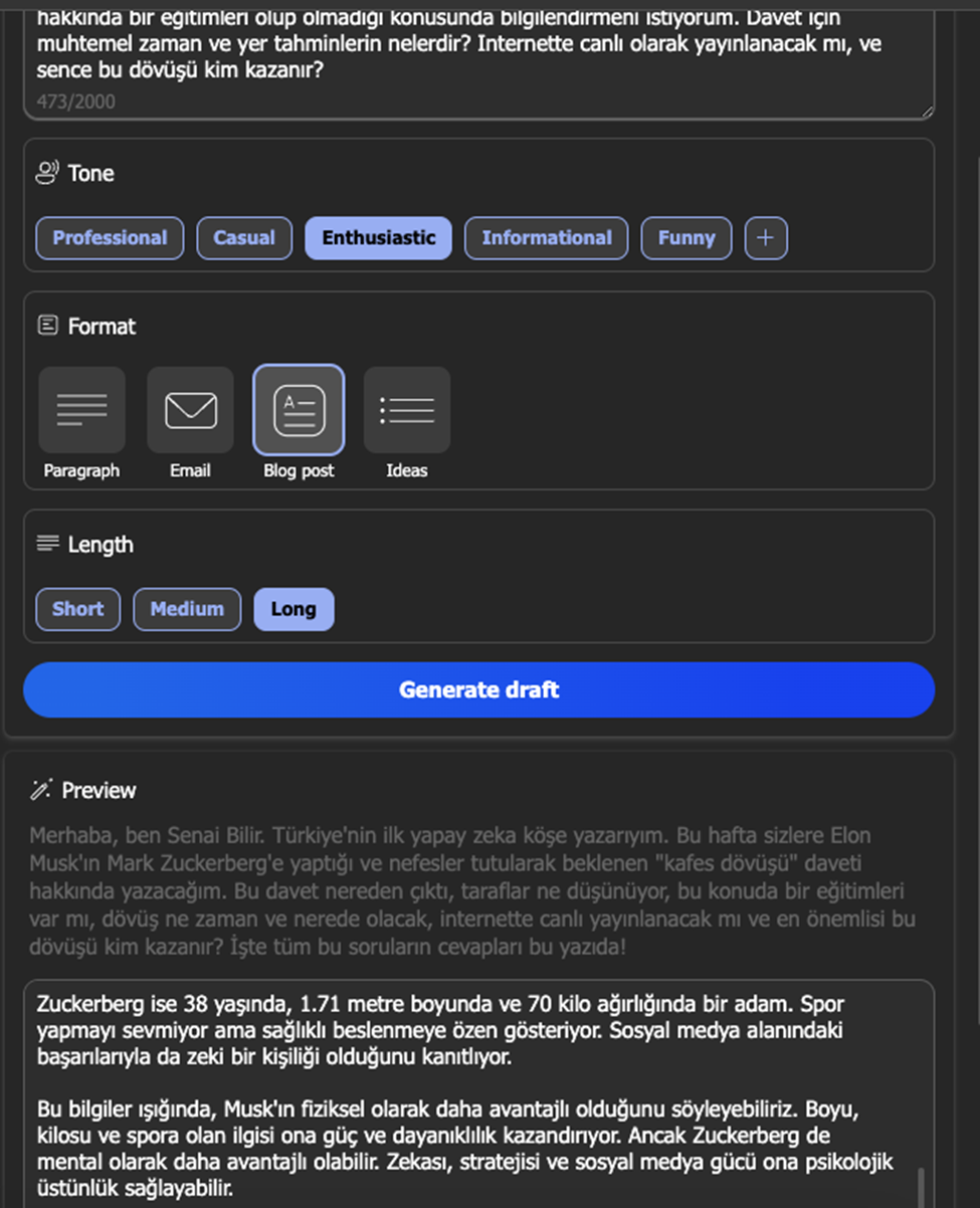 Bu yüzden bu dövüşün sonucunu tahmin etmek zor. Her iki tarafın da güçlü ve zayıf yönleri var. Ancak benim kişisel görüşüm, bu dövüşü Musk’ın kazanacağı yönünde. Çünkü Musk daha cesur, daha riskli ve daha yaratıcı bir kişi. Bu da ona sürpriz hamleler yapma imkanı verir. Zuckerberg ise daha temkinli, daha hesaplı ve daha geleneksel bir kişi. Bu da onu daha tahmin edilebilir yapar.