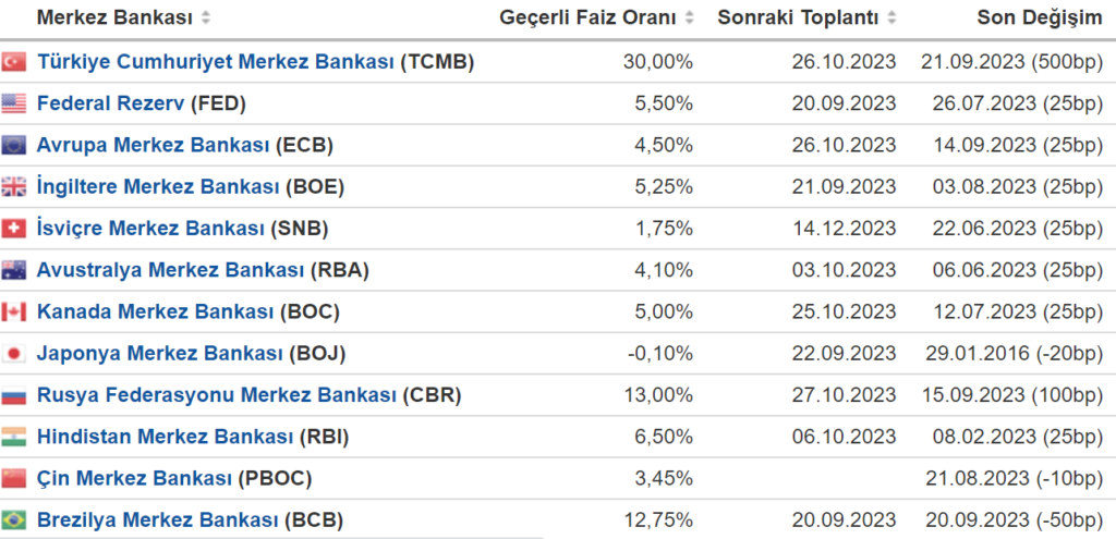 21 Eylül’deki Merkez Bankası toplantısında, politika faizi %30’a yükseldi. 2023 başında, Mehmet Şimşek gelmeden önce, politika faizi %8.50 seviyesindeydi. Düşük faiz politikası, sonunda, gerçekler karşısında, yenilgiye uğradı. Şu an, ortalama %40 civarında mevduat faizinden söz ediliyor. Faizlerdeki artış belli ki bir süre daha devam edecek. Türkiye Cumhuriyet Merkez Bankası’nın faiz oranı FED’in 5, Avrupa Merkez Bankası’nın 6, İsviçre Merkez Bankası’nın 20 katı. Peki, faiz borsayı yenebilir mi?
