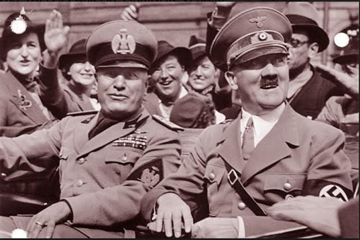 Yukarıda fotoğrafta ise Mussolini “Kara Gömlekli”lerin arasında. Hitler müttefikinin yuvasında kabarmasına kerhen izin vermiş gibi. Lâkin kaynaklarda o tarihî buluşmanın perde arkasında kibir, güç, halkına baskın görünme yarışının protokole, programlara, ortama uygun “hadi rastgele” demeçlere yansıması da var.