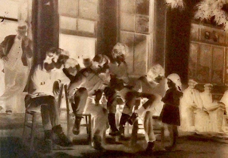 Mutsuz olduklarının kanıtı filan değil. Makinelerin uzun pozlama süreleri, saniyelerce hareketsiz, mum gibi durmayı gerektiriyor. Onca zaman “gülmek” de zor. Yukarıdaki fotoğrafta oturan kadınlar o kritik ânı, sınavı kazasız atlatabilmek için el ele tutuşarak birbirinden güç alıyor gibi mesela. Ortadakinin yüzünde dehşet ifadesi…
