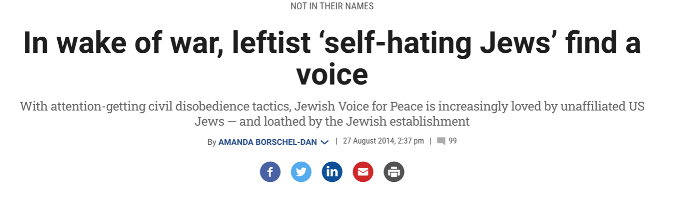 İsrail medyası ve Amerika’daki sağcı Yahudiler ise, Barış için Yahudi Sesi’nin antisemitist olduğunu söylüyor, bu örgüte destek veren Yahudilere “kendinden nefret eden Yahudi” diyor.