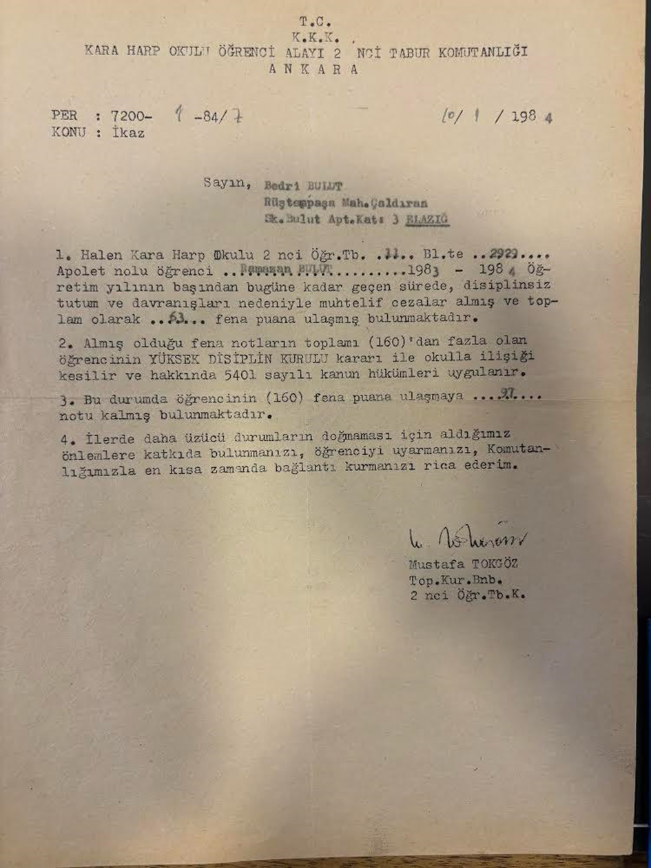 Meğer okuldan “Oğlunuz disiplinsiz tutum ve davranışları nedeniyle muhtelif cezalar almış ve toplam olarak 63 fena puana ulaşmış bulunmaktadır,” şeklinde bir yazı gönderilmiş.