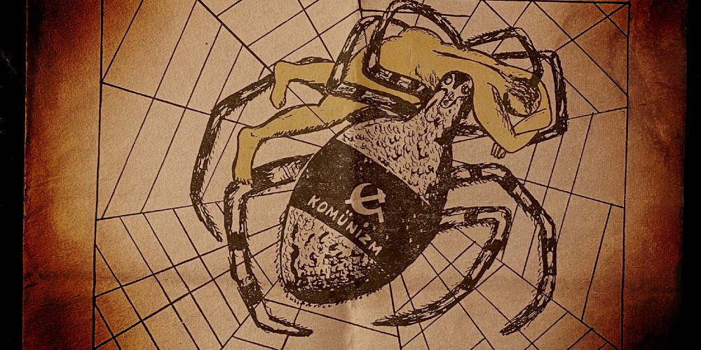 DP’nin resmi bir yayınında da komünizm, kutsal olan bütün kıymetleri ortadan kaldıran bir ideoloji olarak resmedilir: