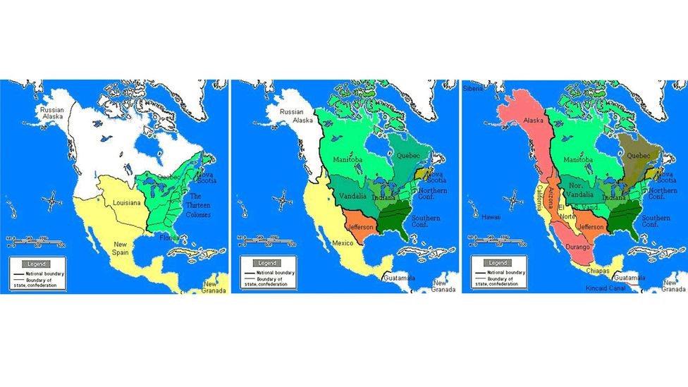 Biraz duralım. Çok kuşbakışı, olabilecek en makro planda, şu kadarı doğru tabii: anahatlarıyla tarih, rastgele bir kurgu değil. Avcılık ve toplayıcılık, sonra tarım, sonra potansiyel olarak vergilendirilebilir artı-ürün, sonra devlet, çok sonra kapitalizm, daha da sonra sanayi devrimi… olacaktıysa, kabaca bu sırayı izlemek zorundaydı. Ancak madalyonun diğer yüzünde, gerek bu aşamaların, gerekse sonrakilerin, olmaması da mümkündü pekâlâ. Karmaşık ve bilinçli hayat hiç ortaya çıkmayabilirdi örneğin. Veya avcılık-toplayıcılıktan tarıma hiç geçilmeyebilirdi, bazı kritik iklim değişiklikleri yaşanmasa. Geçtim; asıl bu “büyük tablo”nun içine girip bilhassa siyasî-askerî tarihin alt unsurlarını kurcaladığımızda, zorunluluk payı giderek düşerken ortaya genişleyen bir olasılıklar yelpazesi çıkıyor. Ne Karolenj hanedanı kurulmak zorundaydı, ne de Osmanlı İmparatorluğu. Bizans düşmeyebilir (1453); Napolyon Waterloo’da yenilmeyebilir (1815); Amerikan Bağımsızlık Savaşını (1775-83) koloniler kazanmayabilir (en tepedeki üç harita, bu takdirde Kuzey Amerika’nın nasıl bir şekil alabileceğini göstermeye çalışıyor); alternatif bir senaryoda, bağımsız ABD’de patlak veren İç Savaş’tan (1861-65) Güney galip çıkabilir ve kölelik ilga edilmeyebilir; Bismarck 1870’te Almanya’yı birleştiremeyebilir; 1917’de Çarlık yıkılmayabilir; dolayısıyla Türkiye etrafında örülen kuşatma ve paylaşım çemberinin doğu halkası da kapanabilir; Hitler 1941’de Sovyetlere saldırmak yerine Ağustos 1939 Molotov-Ribbentrop Paktı’nın öngördüğü “ortak egemenlik” projesinin sınırları içinde kalabilirdi. Bu ve nice benzeri örnekte, sonraki olaylar biraz farklı, belki epey farklı gerçekleşirdi kuşkusuz. Özetle, tarih pek de ders kitaplarımızın tarihi olmayabilirdi — top azıcık o yöne değil de azıcık bu yöne zıplamasaydı.
