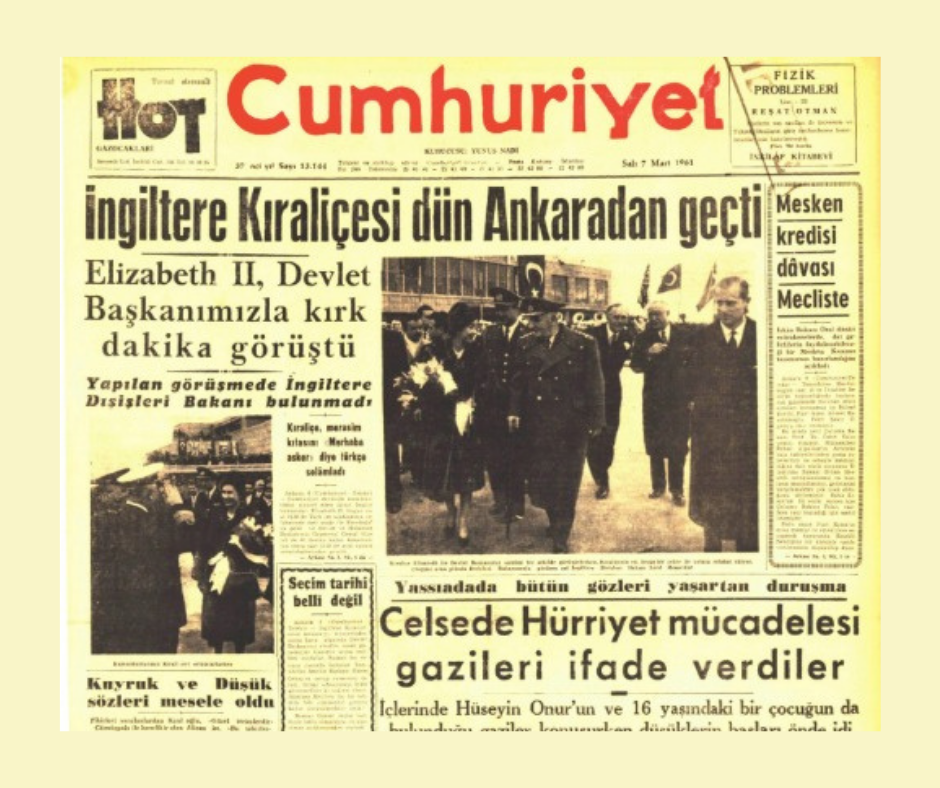 Anıtkabir’i ziyaretinde “Atatürk’ün bu kadar yakışıklı olduğunu bilmiyordum” diyerek gönülleri kazanan Kraliçe, programda olmamasına rağmen Pembe Köşk’te İsmet İnönü ile yarım saat görüştü.