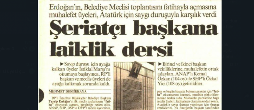 30 yıl önce Erdoğan yaptığında hakkında soruşturma açılanı 30 yıl sonra İmamoğlu yapınca “ne var bunda” deniyor. 15 yıl önce parti kapatma delili olan, 15 yıl sonra seçim kazanma taktiği oluyor.