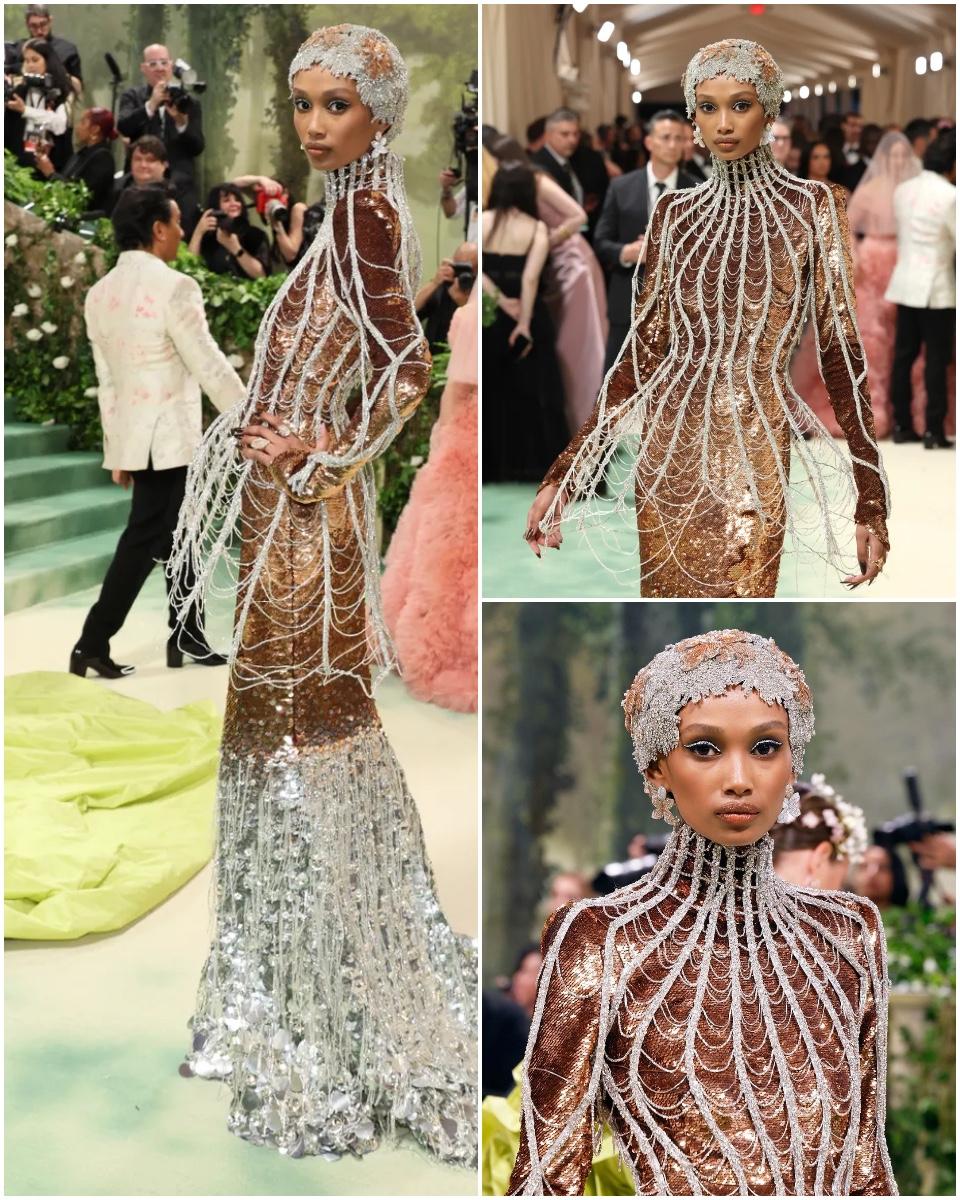 Gecede temayı anlayan ve güzel uygulayan bir kostüm örneği, kumdanelbisesiyle şarkıcı Tyla’nınkiydi. Kum ve kristallerden preslenerek eldeedilen bir malzemeyle hazırlanan elbisenin tasarımcısı Balmain modaevinin kreatif direktörü Olivier Rousteing. Tyla’nın çantası da kum saatişeklindeydi. Rousteing kendisi de aynı kumlu malzemeden yüzününkalıbının olduğu bir bluz giymişti. Tyla’nın elbisesi, tam da dress code’auygun olarak gecenin sonuna erişmeden parçalandı, kesildi, eridi, dağıldı. Zamanın bahçesine adeta dökülüp gitti.