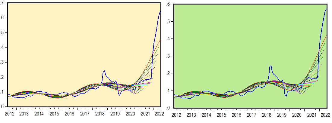 Bu öngörülerin öncelikle kur-enflasyon ilişkisinde belli bir kur patikası varsayılarak ve patlama diyebileceğimiz kur hareketleri dışarıda bırakılarak yapıldığını akılda tutmak lazım. Nisan ayında yayınlanan IMF World Economic Outlook yayınında Türkiye için aynı öngörüler %52.4 ve %29.7!! İki kurumdan biri araştırma bölümlerinde liyakat bazlı istihdamı sıfırlamış demek yerine, TC verisinin en donanımlı araştırmacılar için bile hayatı ne kadar zorlaştırdığını söylemek daha doğru teşhis. Bir kur patlaması devre dışı bırakıldığı durumda dahi kurun seyrini, üretici fiyatlarındaki gelişimi, bundan TÜFE’ye olan geçişkenliği ve fiyat koyucuların kur ve enflasyon beklentilerini fiyatlara nasıl yansıtacaklarını kestirebilmek çok zor. Dolayısıyla öngörülerden nokta atış beklentisi içinde olmak yerine enflasyon dinamiklerine dair teşhis geliştirebilmek bana böyle bir ortamda daha doğru gözüküyor.