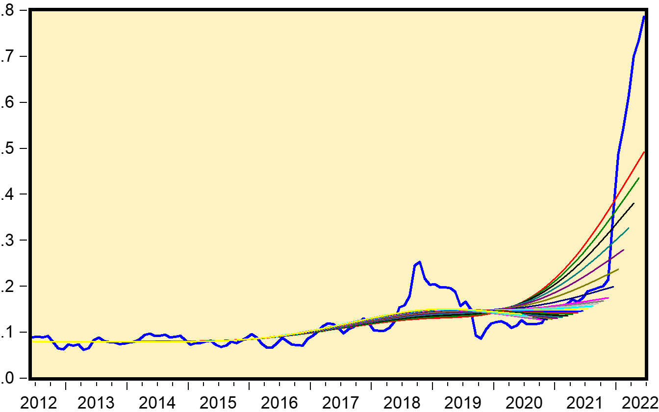 Dönelim enflasyona. Bu eşik/rejim/katı değer ileride oldukça yüksek bir düzey olarak karşımıza çıkacak sanırım. İstatistik konusunda tanıdığım en ehil insan bu mevzuyu konuşurken sağolsun hemen kendi “kestirme” çıktısını benimle paylaştı: 2004-2017 arası %8.4 düzeyinde. Son dönemi dışarıda bırakarak “kestirim”e giderseniz yaklaşık ikiye katlıyor ancak pek anlamı yok, çünkü son dönemi, yani dinamiği en bozuk dönemi dışarıda bırakmanın anlamı yok. Oynaklığın azalmasını bekleyip, veriyi kullanılabilir halde bulunca tekrar kestirme yoluna gideceğiz. Guesstimate’ım -bence ‘kestirme’ bu kavrama çok daha uygun- bu oranın %30 civarında bir yerlerde olacağı. Ama bekleyip görmek lazım.
