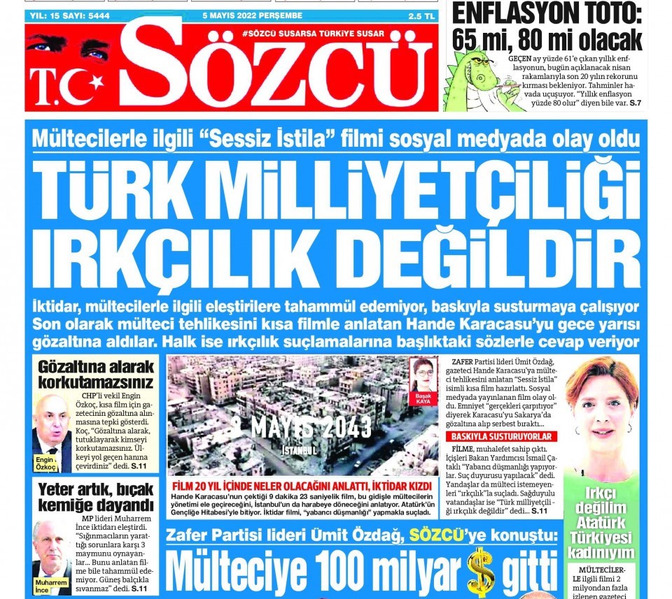 Ve Sözcü gazetesinin sadece milliyetçi değil, hem milliyetçi hem ırkçı olduğu su götürmez bir gerçektir.