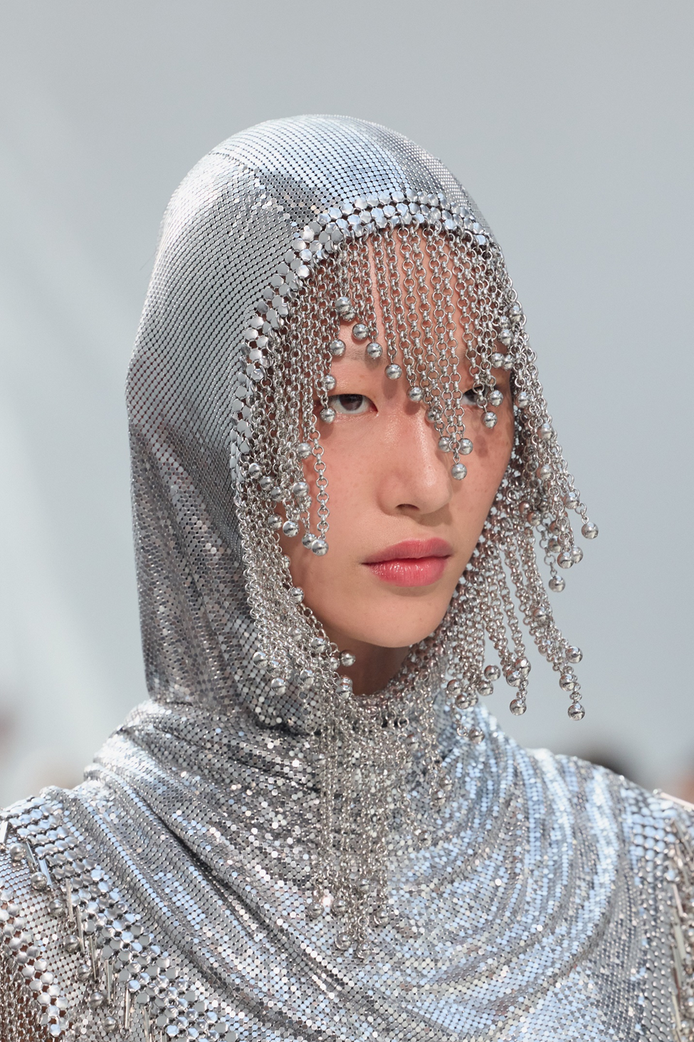 Orta çağ zırhlarına benzer materyallerle fütüristik parçalar tasarlayan Paco Rabanne’ın ünü, 1960larda çıkardığı “Twelve Unwearable Dresses (12 Giyilemez Elbise)” koleksiyonuna, ünlü Fransız şarkıcı Françoise Hardy’ye giydirdiği som altın elbiseye kadar uzanıyor, cam, plastik gibi alışılmadık malzemeleri de giysilerinde kullanıyordu. Audrey Hepburn, Bridget Bardot, Twiggy, Jane Birkin gibi çok ünlüye de hatırda kalan giysiler yaptı Paco Rabanne. Hatta Coco Chanel’in, bence biraz kıskançlıkla, Rabanne için “couture tasarımcısı değil o, demirci ustası” dediği rivayet edilir. Julien Dossena, moda evinin 60’larda üzerine inşa edildiği bu stil kodlarını, bugün ihtimamla okuyup öze dönüşü başarıyla yürütüyor. Bunu yaparken de “bizden” bir güzelliği, ihmal ettiğimiz bir değeri podyuma taşıması da ayrıca heyecan verici.