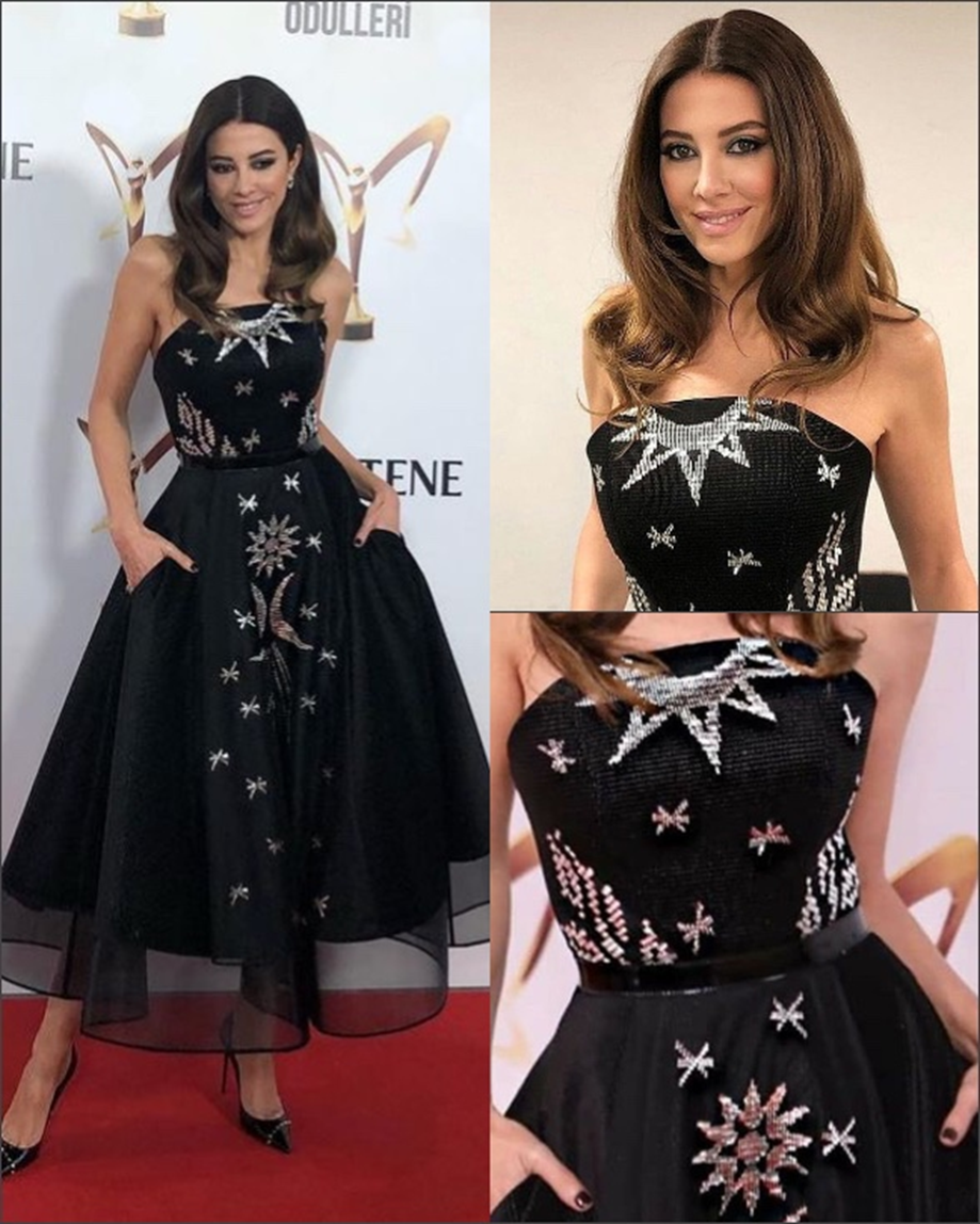 Başak Dizer Tatlıtuğ, Zeynep Tosun tasarımı Bartın işi tel kırma elbisesiyle