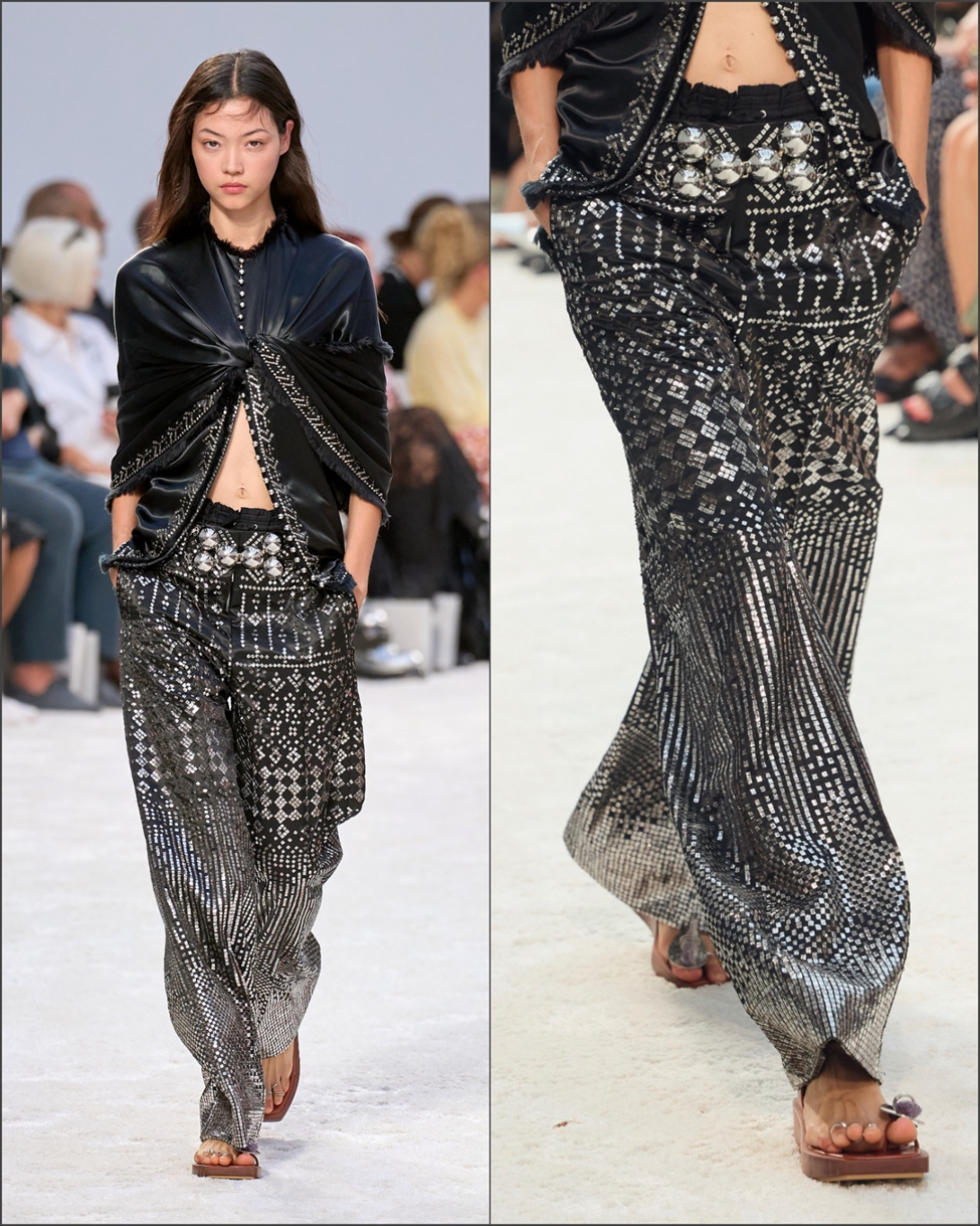 Geçtiğimiz şubat ayında vefat eden ünlü tasarımcı Paco Rabanne’ın izinde, moda evinin kurucusunu hakkıyla yad eden bir koleksiyon izledik Paris Moda Haftasında. Rabanne’ın kreatif direktörü Julien Dossena da koleksiyonu, tam da “Geleceğin Kökleri” ismindeki gibi, sanayi çağı öncesi teknik ve malzemelerle fütüristik bir çizgide tasarlamış. Paco Rabanne kasapların giydiği zırh önlüğe ve tuvalet sifonuna bakıp ilham alan enteresan bir sanatçıydı. Bunlardan tasarladığı çanta 50 senedir en havalı insanlarca aynı heyecanla kullanılan Paco Rabanne. Deli dahi. Zamanlar ötesi.