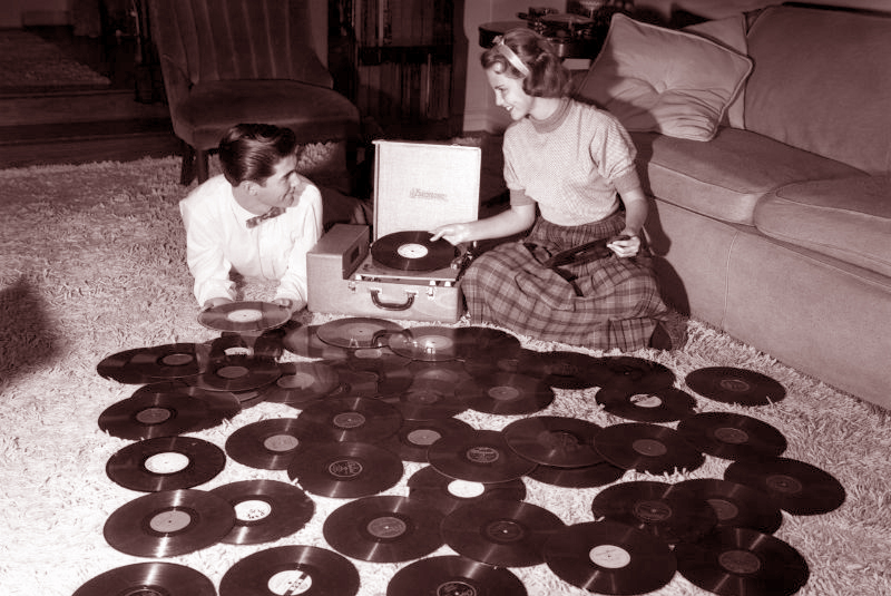 O mekânlar Rock plakların kapağıyla da sokağa yeni vitrinler, afişler taşıyor, o günlerin “Ailenizin Fotoğraf Stüdyosu” vitrinli müzik mağazalarının kravatını gevşetiyor biraz. Yazımın ana fotoğrafında kullandığım 1950’lerin başındaki pikaplı nostaljik siyah-beyaz fotoğraflara da kareye giren hemen her şeyin değişmesiyle farklı bir renk, hayat geliyor. Sokağa çıkan, her mekâna sızan pikap da o “grande toilette” fotoğrafları durma dönen kaidesinde sersemletiyor.
