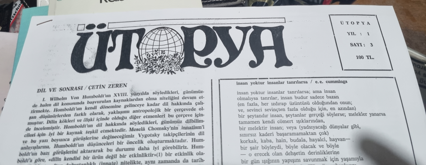 80’lerin başında bir grup üniversite öğrencisi, Sakarya Caddesi’nin dibinde polülasyonu işsiz güçsüz ve dönemin Anayasa tartışmalarında kendilerinden sık sık bahsedilen serserilerden ibaret, ürik asit kokusu, kötü çay ve rahatlatıcı bir kayıdsızlığın hâkim olduğu bir kıraathanede oturur, bol bol edebiyattan ve ülkenin problemlerinden bahsederken, laf dönüp dolaşır bir dergi çıkarma hayâline bağlanır ve bu hayâlin verdiği saadetle dağılırdık. Sonraları Ankara’daki herkesin kendisine geçmiş yazdığı Sakarya Çay Ocağı’nı (burada tarihe de not düşmüş oluyoruz) böyle bulduk. Sanırım Selahattin Oral’di (hikâyecimiz), “yahu buradan çıkalım, şu yukarda açık bir çay ocağı var, zaten soğukta oturuyoruz, bir şey kaybetmiş olmayız” ısrarıyla grubu orada konumlanmanmaya ikna eden. Hatırladığım kadarıyla, Sakarya Çay Ocağı’nı mekân tutan ilk grup, bir müddet sonra Ütopya dergisini çıkarmayı “başaracak” bizim gruptu. Başarmak doğru kelime. 12 Eylül rejimiydi. Dergi çıkarmak için gerekli bürokrasi gözümüzü korkutuyordu ama sonuçta Emniyet Genel Müdürlüğü’nden talebimizin onaylandığına dair bir yazı geldi. Şimdi Almanya’da yaşayan ve derginin mesul’ul müdürlüğüne “atadığımız” Çetin Zeren resmi yazıyı Sakarya’ya getirdiğinde çocuklar gibi sevindik.