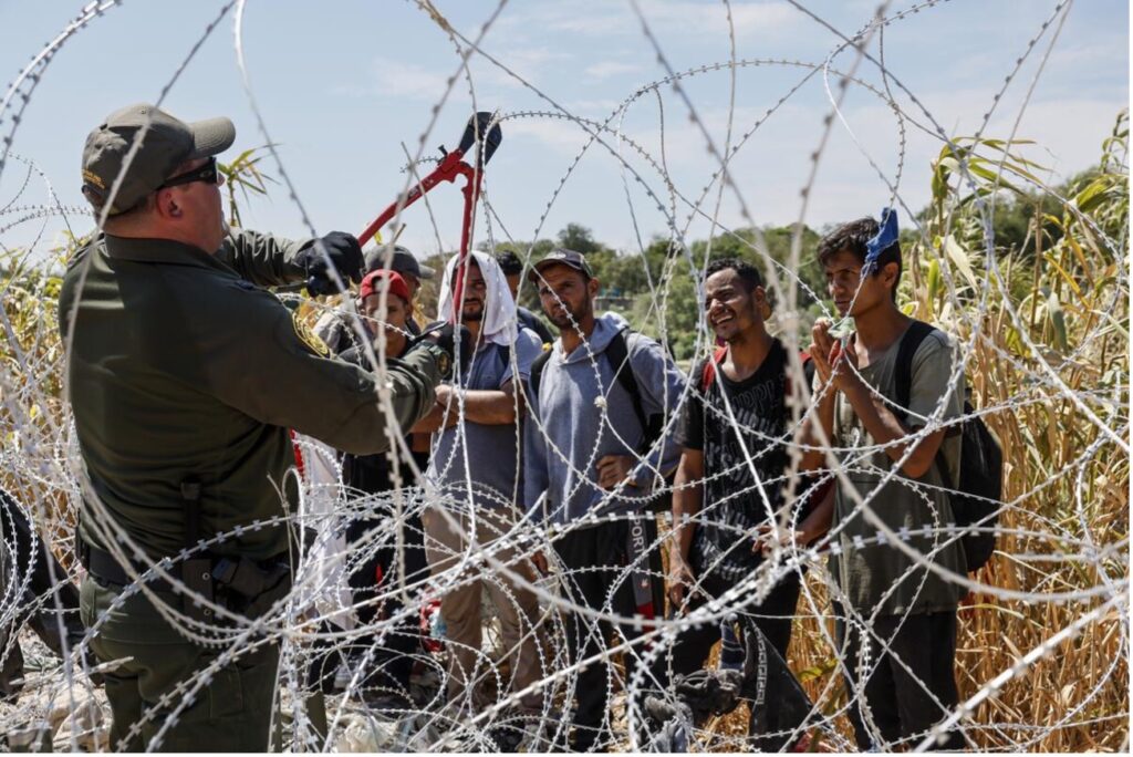 Dikenli teller, Teksas eyaletinin 2021 yılında başlattığı “Yalnız Yıldız” operasyonu kapsamında dikilmişti. Abbot, Florida gibi diğer Cumhuriyetçi eyaletlerin ordularıyla birlikte sınırda nöbet tutmaya başlamış, kaçak göçmenleri otobüslere bindirip kaçak göçmenlerin tespit edilip gözaltına alınmasını engelleyen “sanctuary city” adındaki Demokratları güçlü olduğu New York, Chicago gibi şehirlere toplu bir şekilde yollamıştı. 10 milyar dolarlık bu operasyon kapsamında eyalet ordusu kaçak göçmenleri de gözaltına alıyordu. Teksas 2023 yılında bu operasyonun bir uzantısı olarak yeni bir yasa daha kabul etti ve gözaltına alınan göçmenlerin hakim kararıyla sınır dışı edilmesine imkan tanıdı. Bu yasayı federal hükümet yargıya taşıdı ve anayasaya aykırı olduğunu iddia etti.