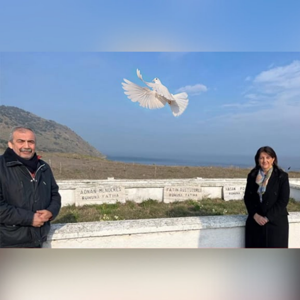 Sırrı Süreyya Önder ve Pervin Buldan “toplumsal barış yolunda”, İmralı’da 64 yıl önce askeri darbeyle darağacında öldürülen Başbakan Adnan Menderes, Dışişleri Bakanı Fatin Rüştü Zorlu ve Maliye Bakanı Hasan Polatkan’ın ilk mezarlarını da ziyaret etti. Topkapı’daki “Anıt Mezar”a nakledilene kadar 29 yıl yattıkları o “uzak”, metrûk mezarlarını…