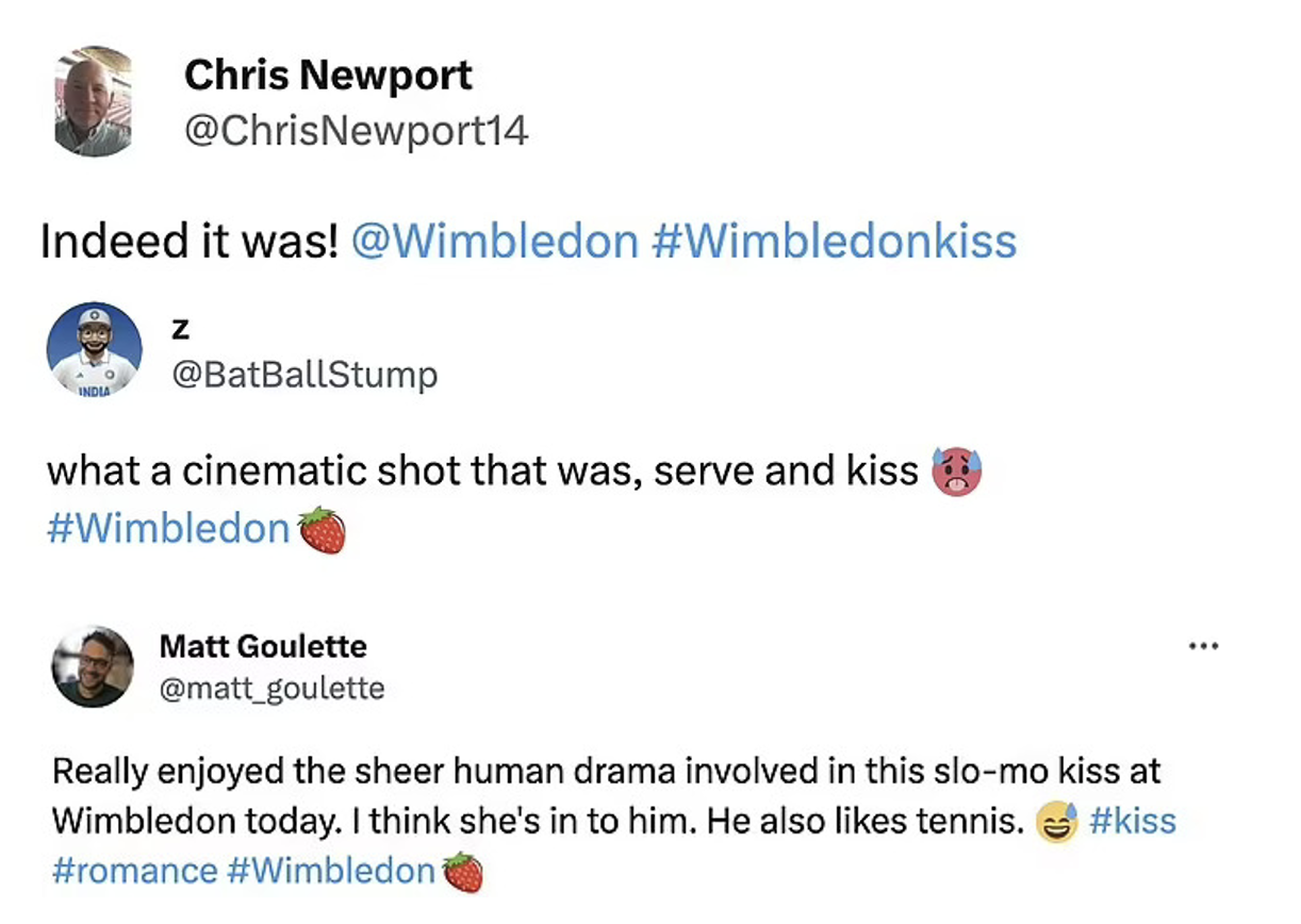Çiftte asıl dikkat çeken olay ise servis sırasında beyefendinin bu özel an yerine kullandığı tercih oldu. Beyefendinin tercihini “love” üzerinden romantize edersek “aşkla oynamak” diye düşünebiliriz, aşkla oynayan, Wimbledon’da kendinden söz ettirmek isteyen Fransız raket Lokoli ve 1. tur karşılaşmasında sorun yaşamak istemeyen dünya 4 numarası Casper Ruud’un mücadelesini izlemek oldu.