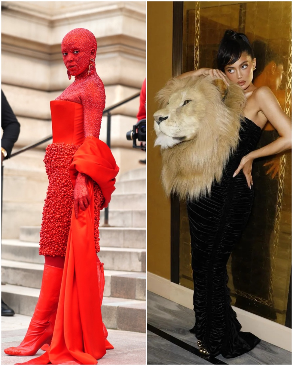 Doja Cat’in ve Kendall Jenner’ın, Schiaparelli defilesinde giydikleri bu kıyafetler (ve makyaj) çok konuşuldu. Moda evi bu koleksiyondaki hayvan temalı detaylarla Dante’nin İlahi Komedya’sına göndermeler yapma iddiasındaydı. Göndermeler biraz zorlama ve zayıf olsa da izlemeye gelen ünlülerin sansasyonel görüntüleri sayesinde defile, “yılın enleri” arasında yerini aldı.