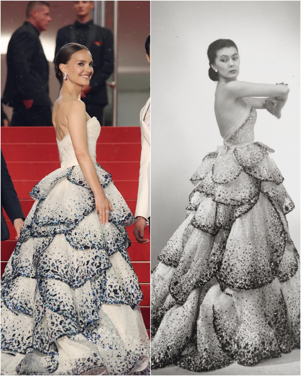 Cannes Film Festivali kırmızı halısında Natalie Portman’ın çok ikonik bir elbiseyi, ‘49 senesinden Dior Junon’un yeni yapılmış bir versiyonunu giymesi de yılın enleri arasındaydı. Portman’ın giydiği elbisenin dokusu ve işlemelerin yoğunluğu orijinali gibi değildi tabii, defalarca Galliano, Zuhair Murad vs. tarafından benzeri yapılan bu elbisenin ilham kaynağı Roma mitolojisinden Juno, Grek karşılığı Hera. Elbisenin formu ve işlemeleri, Tanrıça Juno’nun sembolü olan tavuskuşuna benziyor.