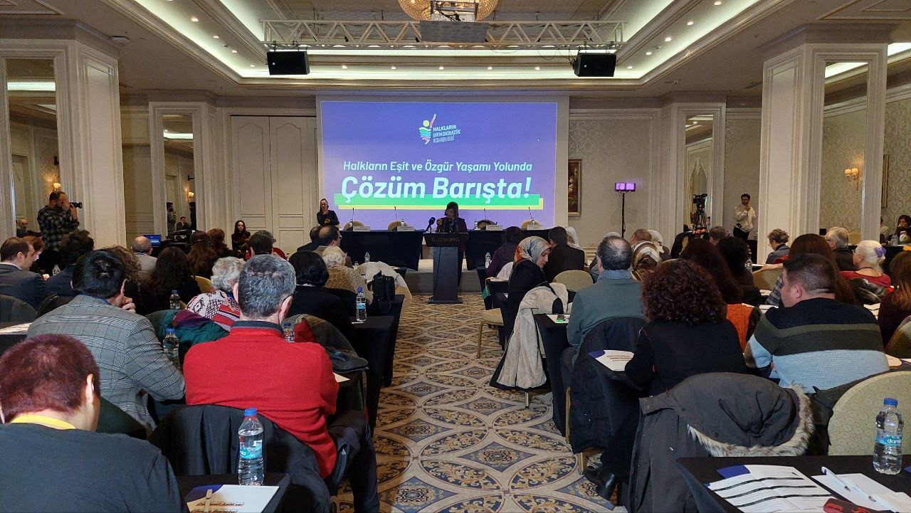 “Halkların Demokratik Kongresi (HDK) tarafından İstanbul’da düzenlenen ve iki gün sürecek olan “Halkların Özgür ve Eşit Yaşamı Yolunda, Çözüm Barışta” konferansı başladı. Konferansa pek çok ulusal ve uluslararası düzeyde siyasetçi, aydın, tarihçi, hukukçu, akademisyenler ve gazeteciler katılım sağladı. Altı oturumdan oluşan konferansın açılış konuşmasını HDK Eş Sözcüsü Meral Danış Beştaş yaptı. Beştaş açılış konuşmasında, “Barış mümkündür” dedi. Barışı konuşmak için toplandıklarını vurguladı.”
