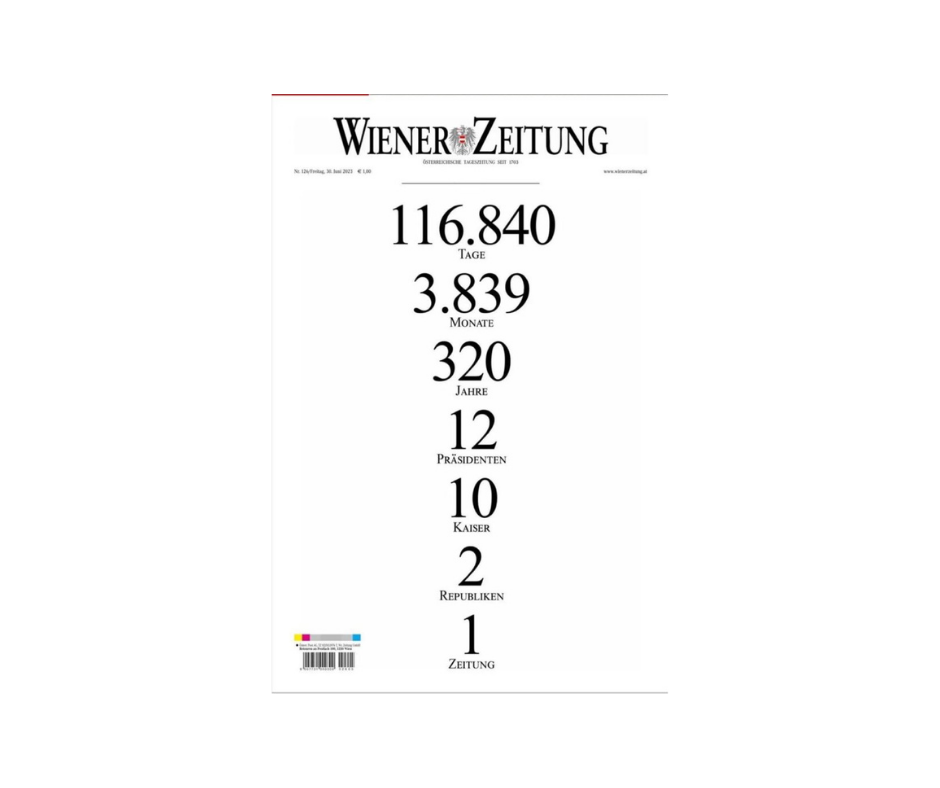 İlk sayısı 8 Ağustos 1703’te çıkan Viyana merkezli “Wiener Zeitung” 320 yıl sonra yoluna internet gazetesi olarak devam edecek.