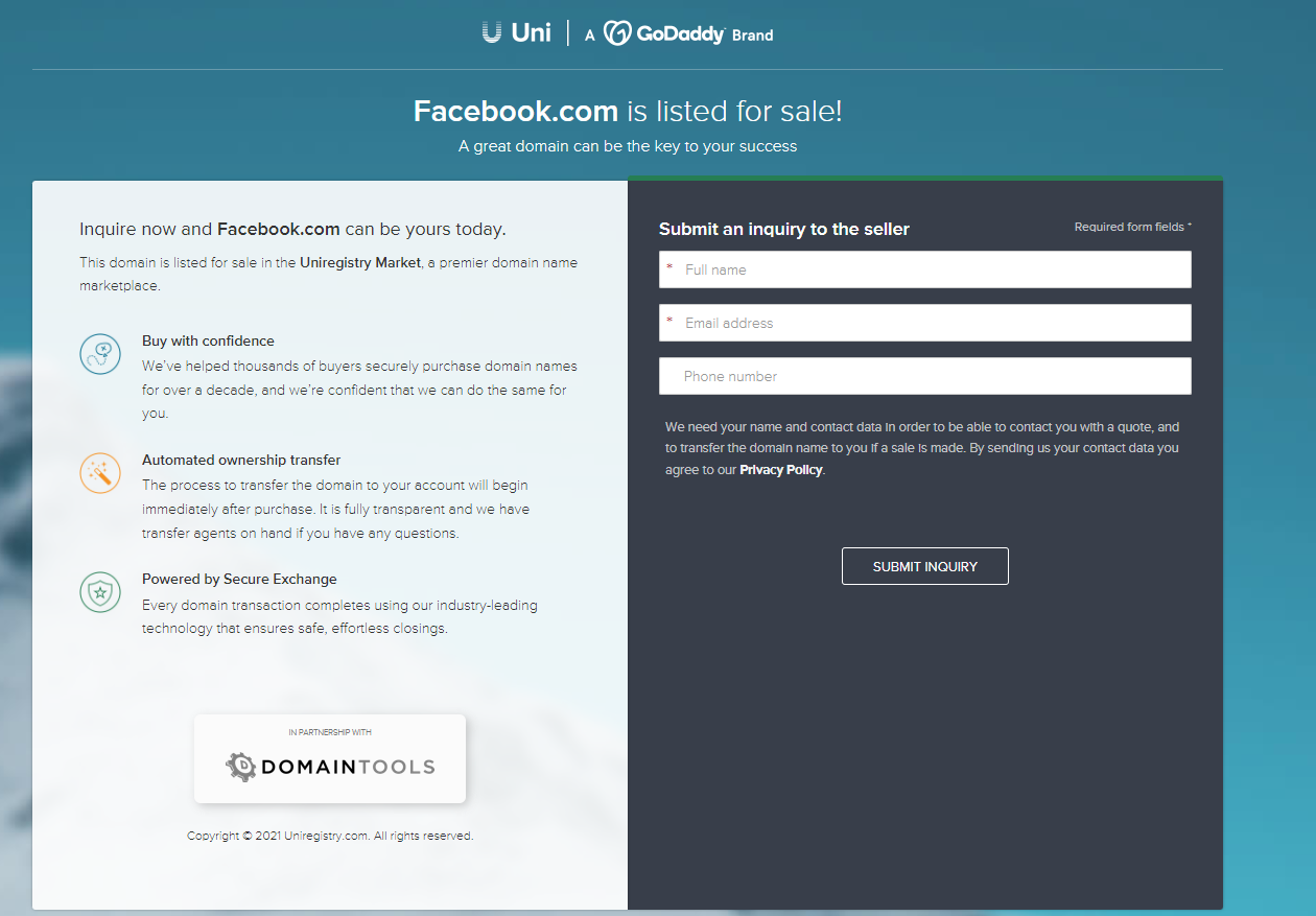 Ayrıca birkaç farklı alan adı kayıt şirketi, Facebook.com alan adını satılık olarak listeledi. Bu, süresi dolmuş, terk edilmiş veya yakın zamanda boşaltılmış gibi görünen kayıtlı alan adlarını arayan otomatik sistemlerin rutin bir işlemi. Ama tabii ki Facebook.com’un gerçekten bu şekilde satılacağına inanmak için hiçbir neden yoktu.