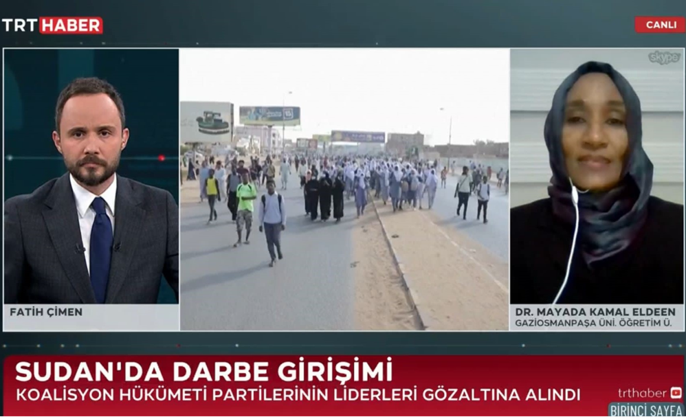 Dün akşam TRT Haber’e konuk olan Gaziosmanpaşa Üni. Öğretim Üyesi Sudanlı Mayada Kamal Eldeen ise, paylaştığı tweet dizisinde Sudan’daki son gelişmelerin darbe olarak nitelendirilemeyeceğini söyledi:
