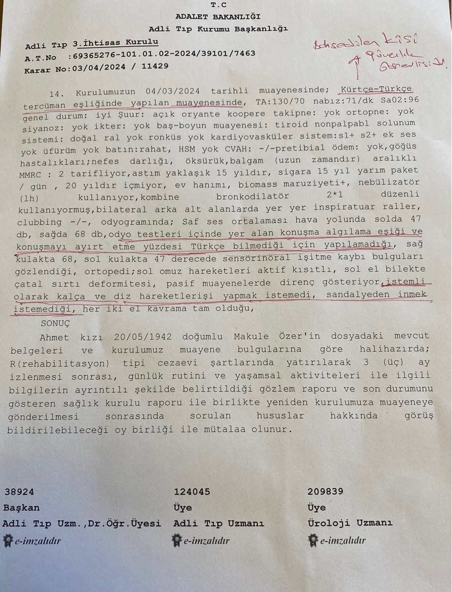 Makbule Özer hakkında ‘cezaevinde kalabilir’ kararı verilen Adli Tıp Kurumu (ATK) kararında “Ayırt etme yüzdesi Türkçe bilmediği için yapılamadı” ifadesi dikkat çekti.