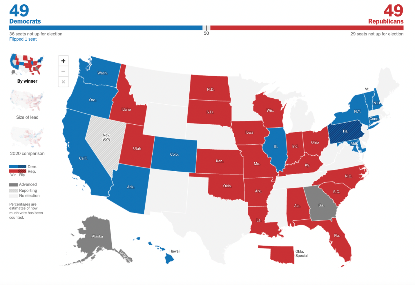 Arizona ile birlikte Demokratlar’la Cumhuriyetçiler’in 49’ar senatörlük kazandığı kesinleşti.