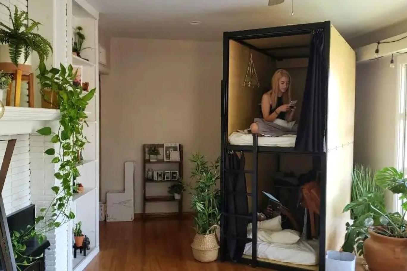 Brownstone Shared Housing adlı paylaşımlı konut girişimi, ufak ranza bölmelerini aylık 800 dolara kiralıyor. Bölmeler sayesinde üç odalı bir evde 14 kişi kalabiliyor. Evde iki de tuvalet bulunuyor.
