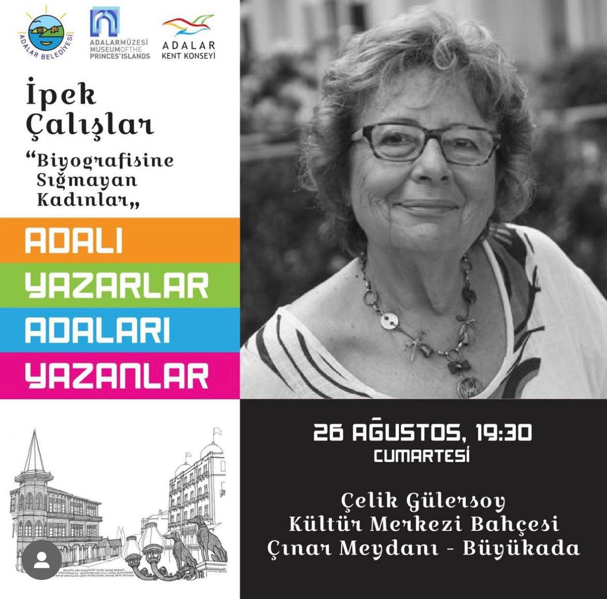 - 19.30 – İpek Çalışlar –Biyografisine Sığmayan Kadınlar—Çelik Gülersoy Kültür Sanat Merkezi Bahçesi.