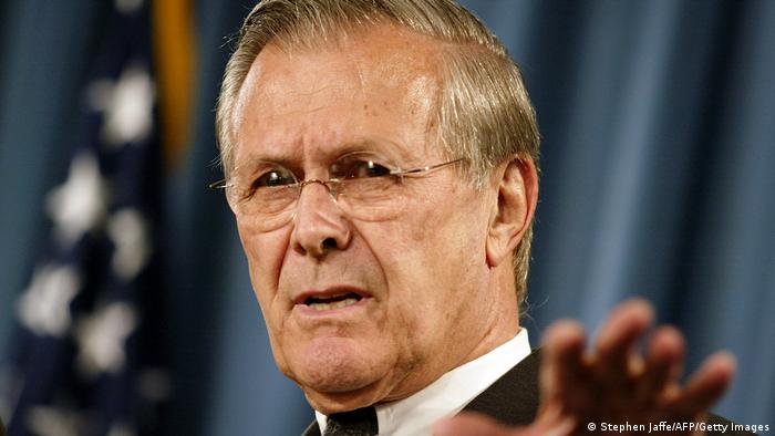 1975-1977 yılları arasında Gerald Ford ve 2001-2006 yılları arasında George W. Bush’un başkanlıkları döneminde savunma bakanlığı görevinde bulunan Rumsfeld, ABD siyasetinin şahin kanadındandı. Kendi partisi Cumhuriyetçiler arasında da tartışmalı bir isim olan Rumsfeld, 2001 yılındaki 11 Eylül saldırıları sonrasında Afganistan ve 2003’teki Irak işgalinde kilit rol oynadı.
