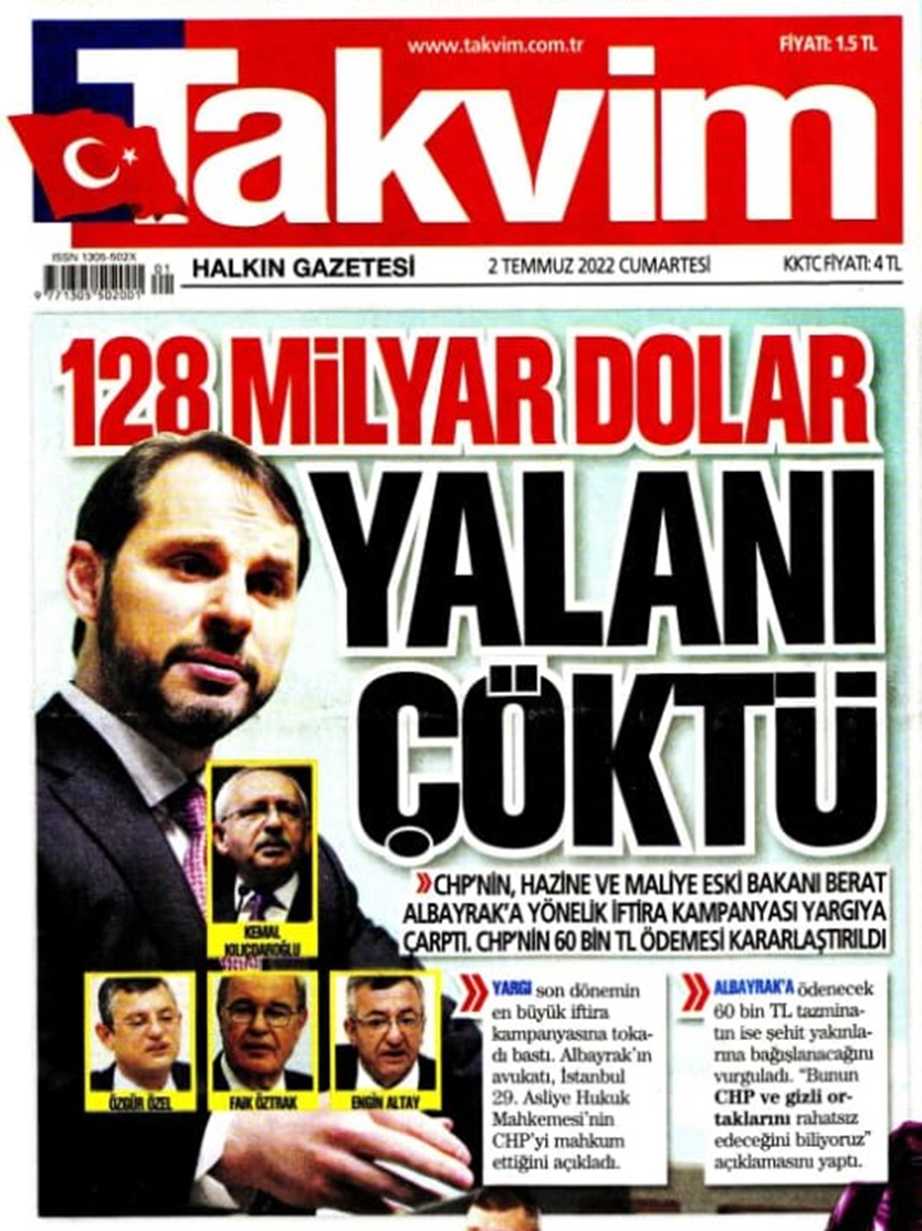 Eski Hazine ve Maliye Bakanı Berat Albayrak’ın avukatı İsa Sinan Göktaş sosyal medya hesabından CHP’ye açtıkları “128 milyar dolar” davasını kazandıklarını açıkladı.