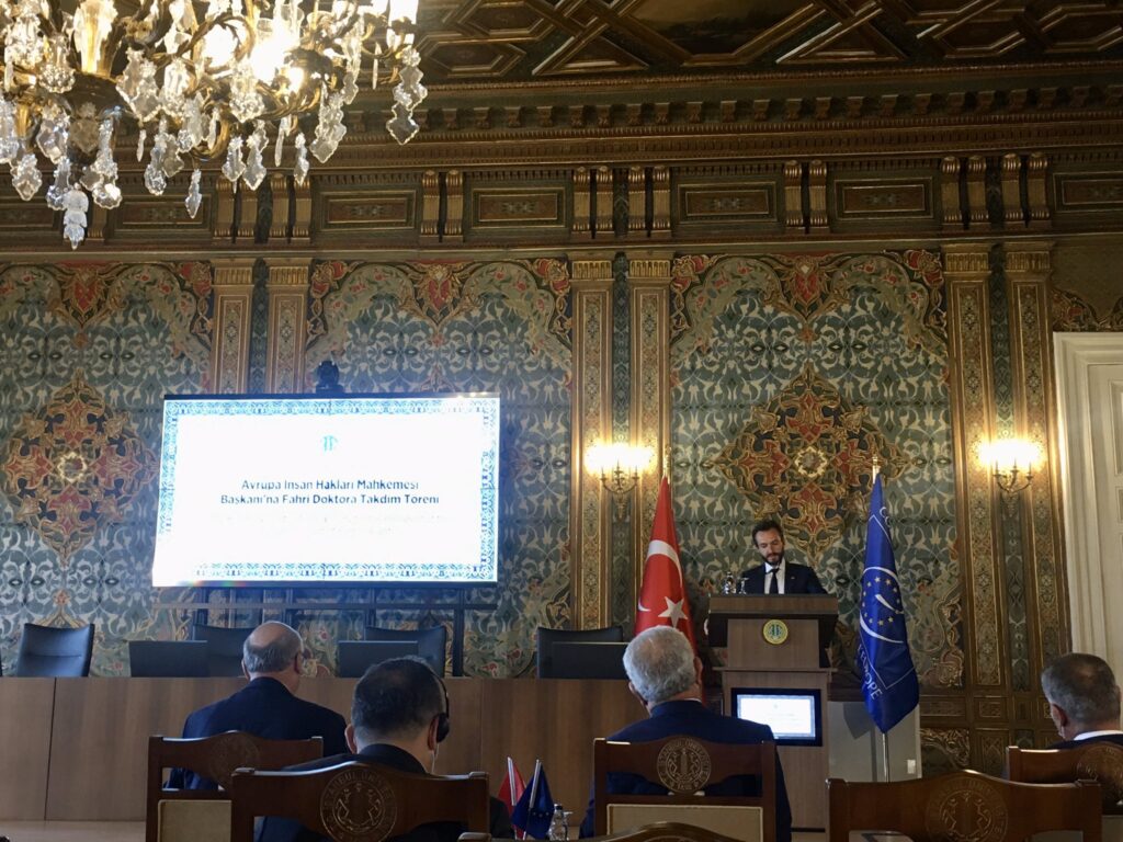 Dört günlük Türkiye ziyaretine İstanbul’da devam eden AİHM Başkanı Robert Spano’nun bugünkü durağı İstanbul Üniversitesi’ydi. Spano’ya burada fahri doktora unvanı verildi.