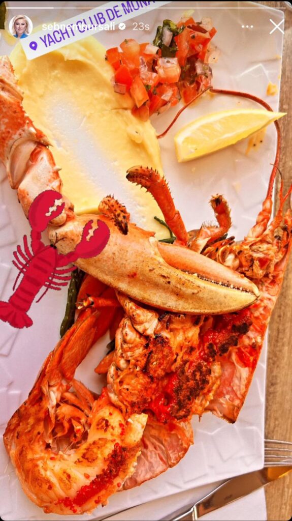 AK Parti İzmir Milletvekili ve Dijital Mecralar Komisyonu Üyesi Şebnem Bursalı, Instagram hesabından, Monaco Yat Kulübü’nde yediği ıstakozun fotoğrafını paylaştı.