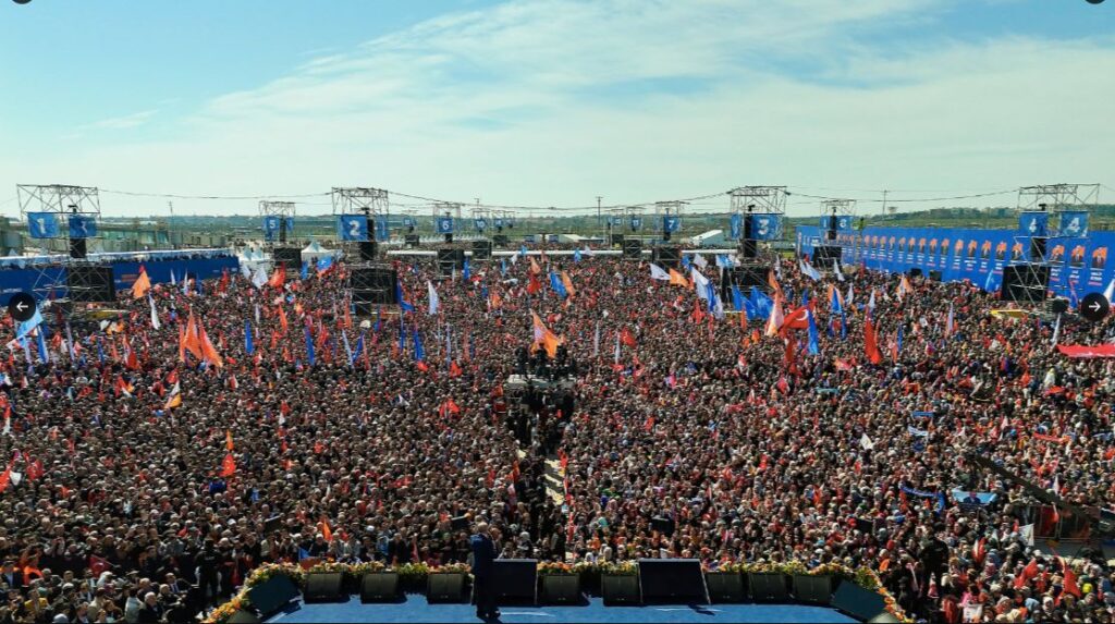 İstanbul Atatürk Havalimanı’ndaki AK Parti mitinginde Cumhurbaşkanı Erdoğan konuştu, mitingin başında Cengiz Kurtoğlu ile “Duyanlara” şarkısını söyledi. Yeniden Refah Partisi’nden istifa eden İstanbul Milletvekili Suat Pamukçu, AK Parti’ye katıldı. Erdoğan İmamoğlu’na “ Bay Ekrem” dedi. Polisin bildirdiği 650 bin sayısını beğenmedi: “Bu meydanda 1,5 milyona alıştık, 650 bin varsa durmuyoruz”