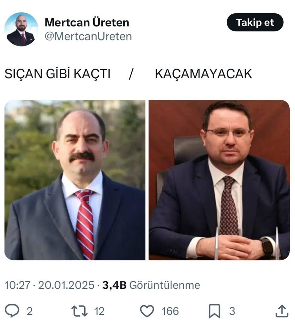 CHP’li belediye meclis üyesi Mertcan Üreten’in gözaltına alınmasına neden olan sosyal medya paylaşımında Akın Gürlek’i, hakkında FETÖ kapsamında yakalama kararı çıkartılan firari eski savcı Zekeriya Öz’e benzettiği ortaya çıktı.