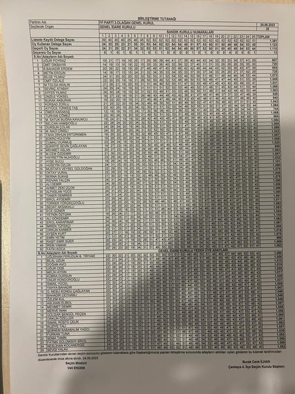 1.110 delegenin oy kullandığı İYİ Parti Genel İdare Kurulu’nda en az oyu İYİ Parti lideri Meral Akşener’in yakın kadrosu aldı.