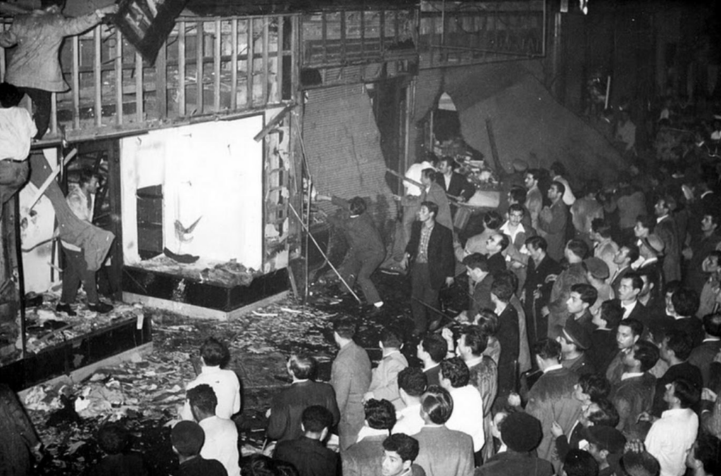 [1] “6-7 Eylül Olayları veya İstanbul Pogromu, İstanbul’da yaşayan Rum azınlığa karşı 6-7 Eylül 1955’te gerçekleşen organize toplu saldırı… Türk basınına göre 11 kişi, bazı Yunan kaynaklarına göre 15 kişi öldürülmüştür… Resmî rakamlara göre 30 kişi, gayri resmi rakamlara göre 300 kişi yaralanmıştır. … resmi rakamlara göre altmış olan tecavüze uğrayan kadın sayısının, utanmalarından veya korkmalarından dolayı şikayette bulunamayanlar nedeniyle 400’e yakın olduğu tahmin edilmektedir… 4.214 ev, 1.004 işyeri, 73 kilise, bir sinagog, iki manastır, 26 okul ile aralarında fabrika, otel, bar gibi yerlerin bulunduğu 5.317 mekân saldırıya uğramıştır.” (Kaynak: Vikipedi).