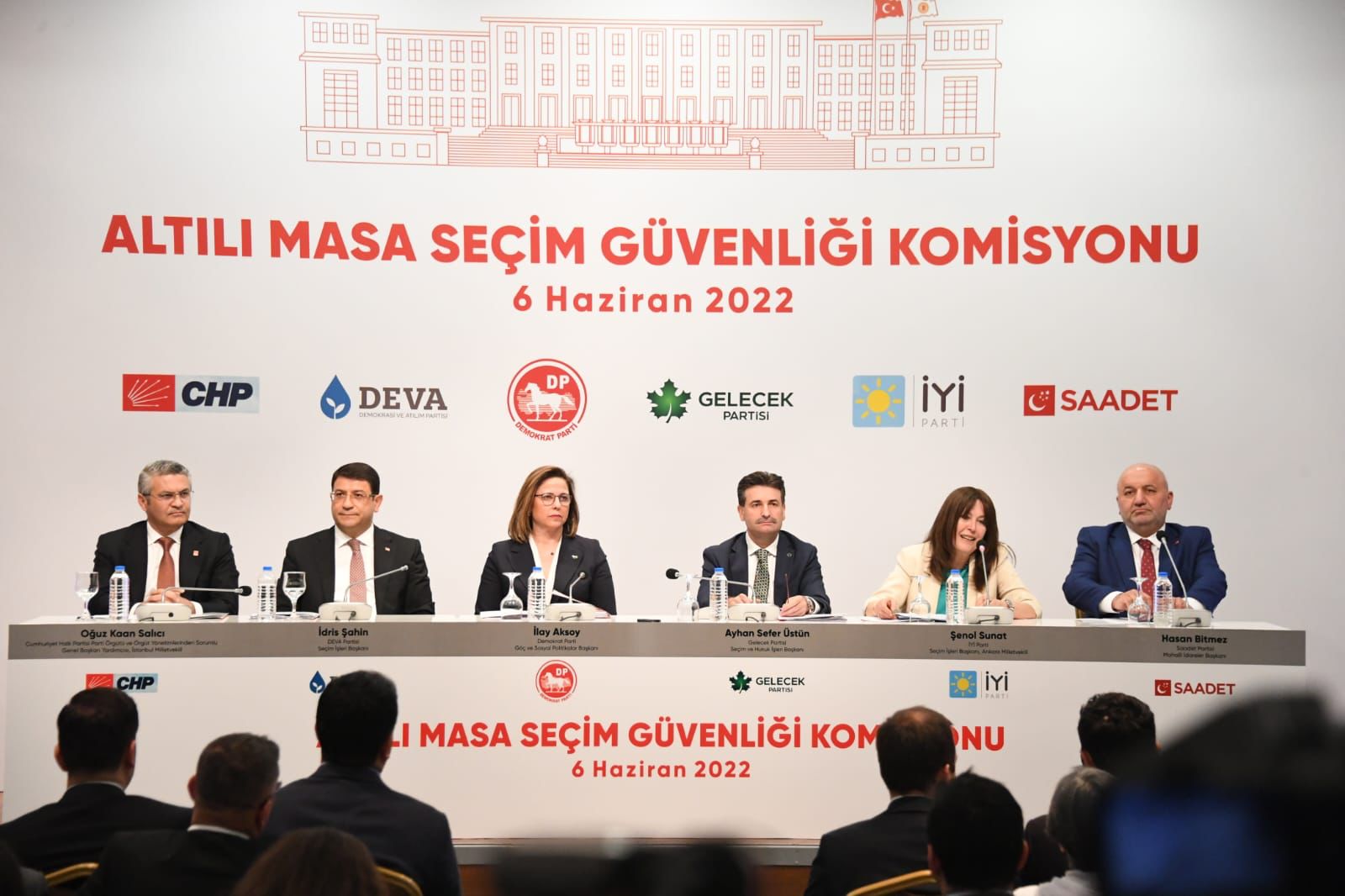 CHP, İyi Parti, DEVA, Gelecek, Demokrat ve Saadet Partisi liderlerinin oluşturduğu ve iktidarın karşısına “altılı masa” olarak çıkan muhalefet; seçim sürecinde ve sonrasında ortak çalışmak için kamuoyuna sundukları güvencelerin ayrıntılarını belirlemeye başladı. İlk ayrıntılı çalışma, altı partinin seçim güvenliğini sağlamak için oluşturduğu özel komisyondan geldi.