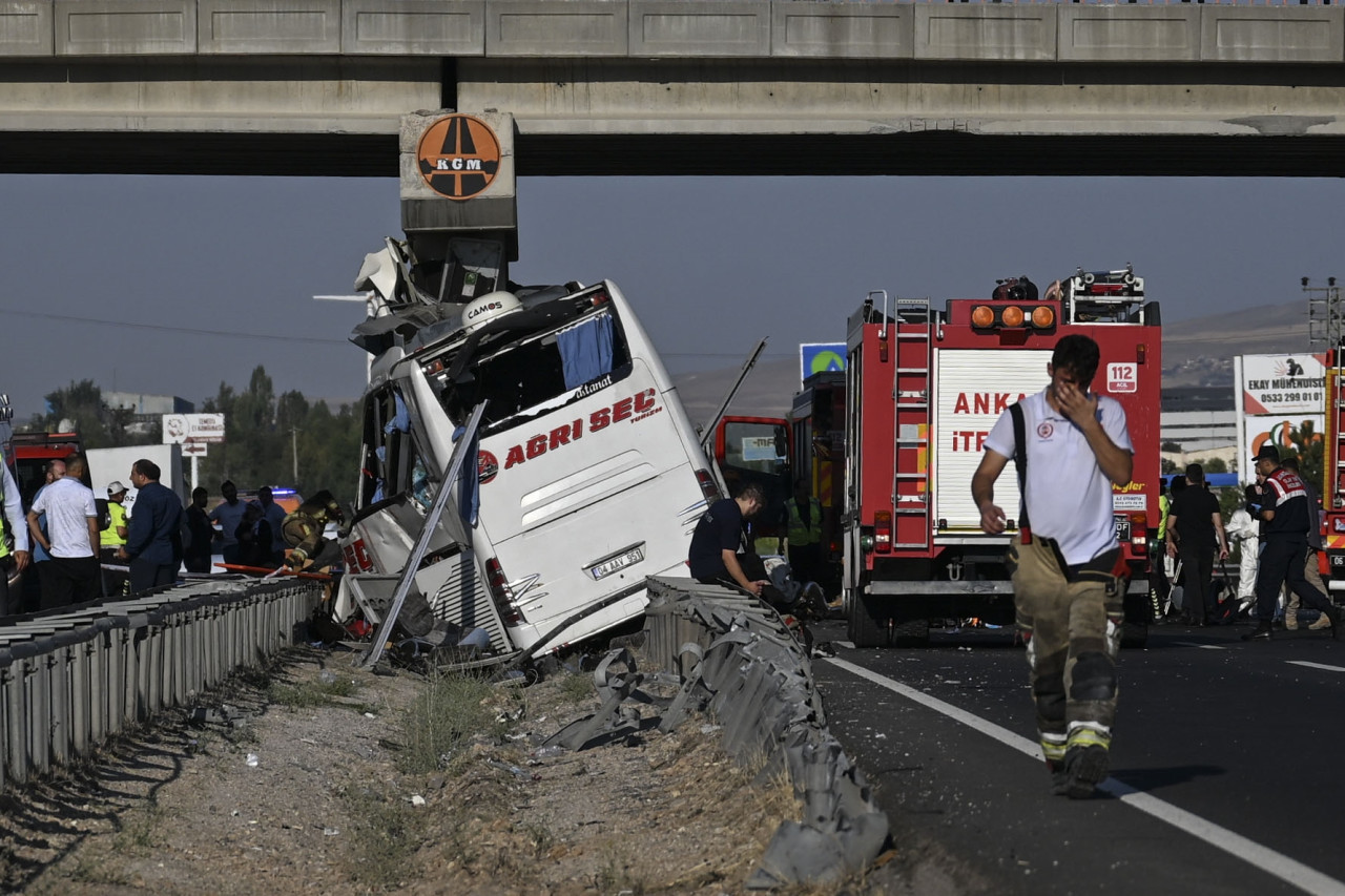Ankara- Eskişehir karayolunda yolcu otobüsü, önce bariyerlere sonra üst geçit duvarına çarptı. Kazada 9 kişinin öldüğü, 26 kişinin yaralandığı bildirildi.