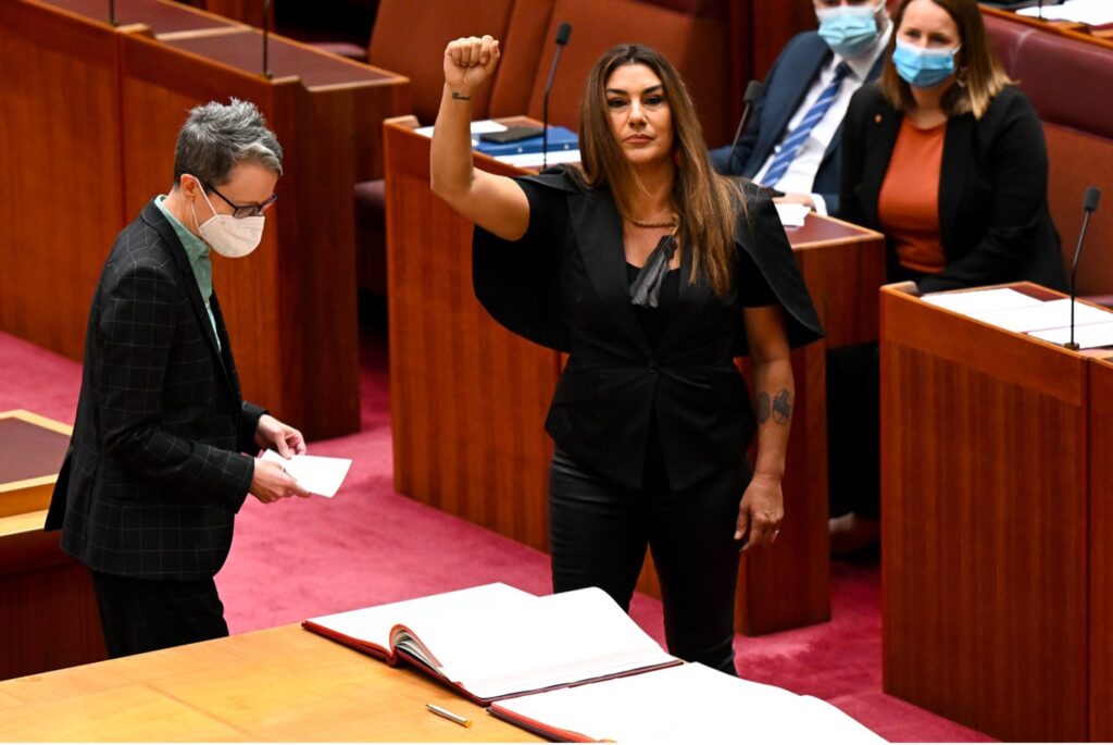 2022 yılındaki federal seçimlerde ikinci kez senatör seçilen Yeşiller Partisi mensubu aborjin senatör Lidia Thorpe, yemin töreninde sağ yumruğunu havaya kaldırarak bir protesto gösterisi gerçekleştirdi. Thorpe, Birleşik Krallık Kraliçesi Elizabeth’e bağlılığını ifade ederken “sömürgeci” ifadesini kullandı, Senato başkanının müdahelesi üzerine Thopre orijinal metne sadık kalarak yeniden yemin etti.
