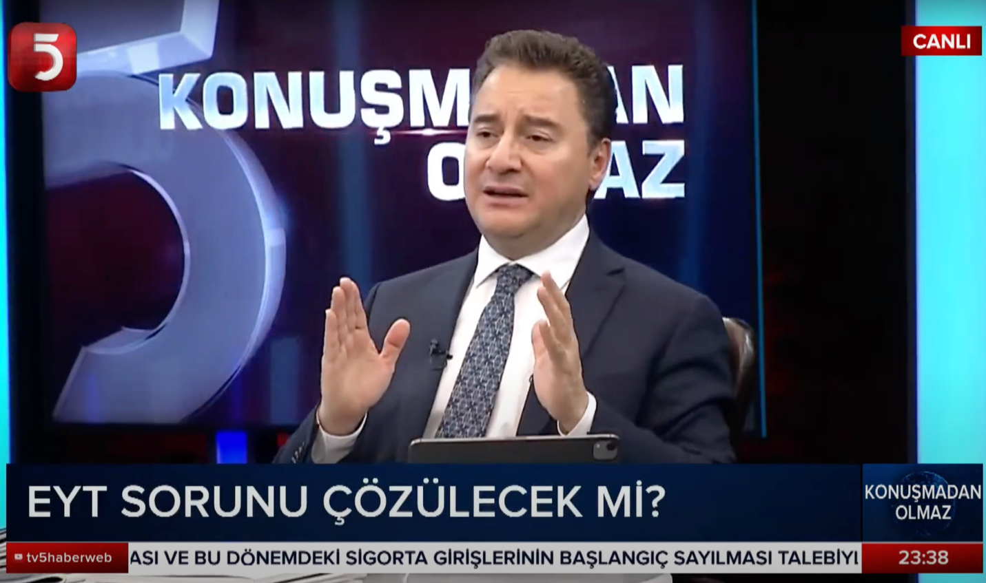 TV5’te Hasan Basri Akdemir’in sorularını yanıtlayan DEVA Partisi lideri Ali Babacan, Altılı Masa’nın son durumu ve güncel konulara dair açıklamalar yaptı.