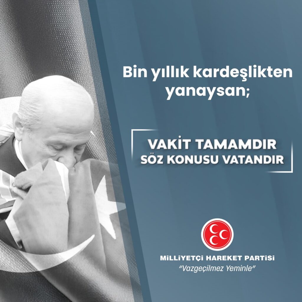 Bugünkü (15 Kasım) paylaşım “Bin yıllık kardeşlikten yanaysan; vakit tamamdır, söz konusu vatandır” notuyla paylaşıldı.