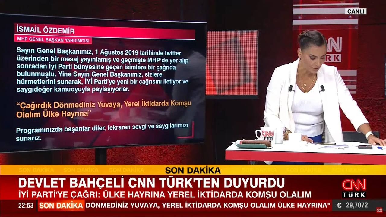 CNN Türk ekranlarında yayınlanan Gece Görüşü programında Hürriyet Gazetesi yazarı Hande Fırat, MHP Genel Başkan Yardımcısı İsmail Özdemir’in mesajını aktardı: