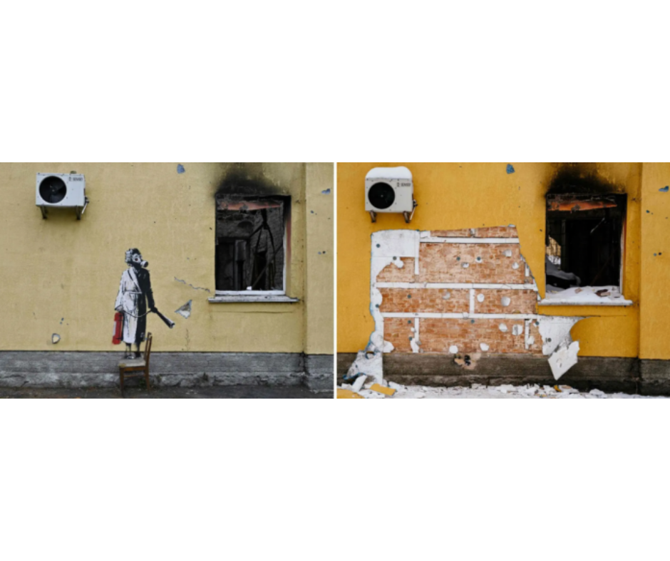 İngiliz sokak sanatçısı Bansky’nin Ukraynalılarla dayanışmak amacıyla işgal sırasında Kyiv’de bir sokak duvarına çizdiği gaz maskeli kadın resmini yerinden söküp çalan Ukraynalıların tutuklandığı ve 12 yıla kadar hapis cezasıyla yargılanacağı açıklandı. 245 bin dolar değerindeki resmi çalan Ukraynalılar savunmalarında, amaçlarının açık arttırmada resmi satıp Ukrayna ordusuna bağışta bulunmak olduğunu, kendilerinin resmi söküp çalmaması durumunda Rusya’nın attığı bombalarla yok olacağını söyledi.