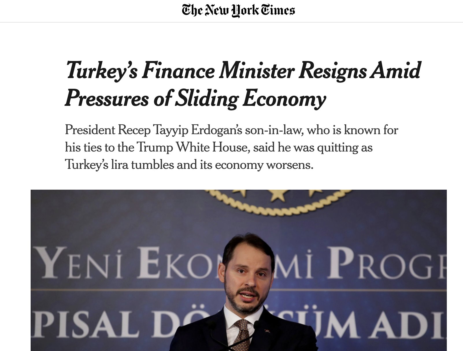 The New York Times Gazetesi ve Reuters Haber Ajansı, Berat Albayrak’ın bakanlık görevinden istifa etmesini haberleştirerek okuyucularına ulaştırdı. Anadolu Ajansı, İhlas Haber Ajansı ve Demirören Haber Ajansı da istifayı okurlarına servis etmedi.