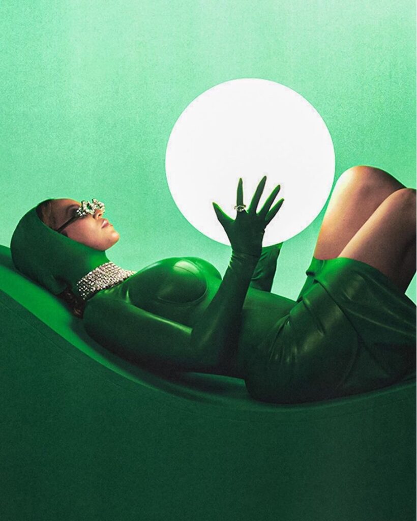 Fotoğrafta Beyoncé‘nin yeşil bir zemin önünde elinde beyaz bir küre tutarak uzandığı görülüyor.