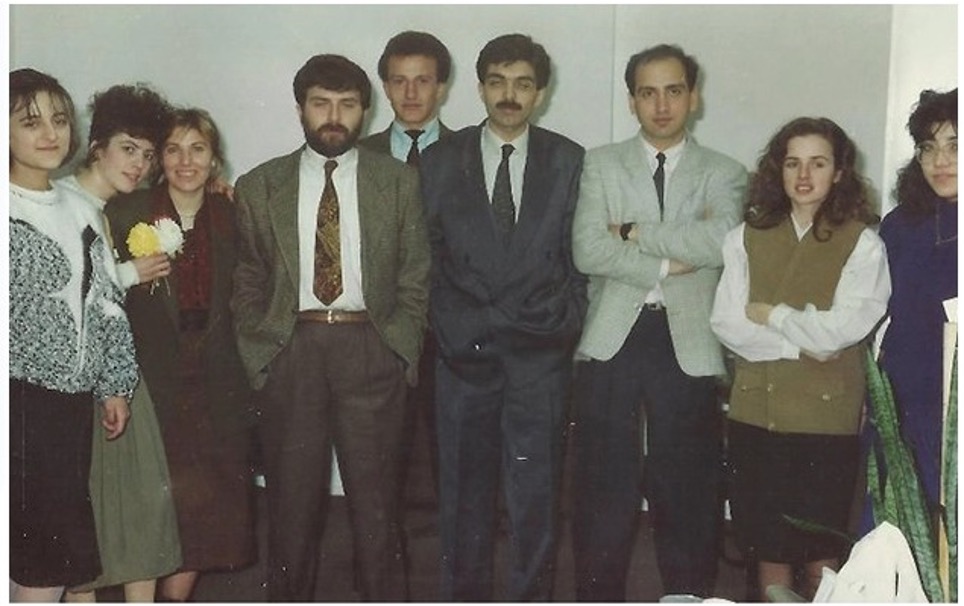 Fotoğraf 1990 yılına ait. Dikkatli gözler Ahmet Hakan Coşkun’un gençlik halini hemen tanıyacaktır. Zaten fazla değiştiği de söylenemez. İki yanındaki gri takım elbiseli Yavuz Kaynarca. (Fotoğrafta gazetenin haber müdürü Nuran, muhasebecisi Şirin gibi tanıdık olmayan isimler de var, onları geçelim.)
